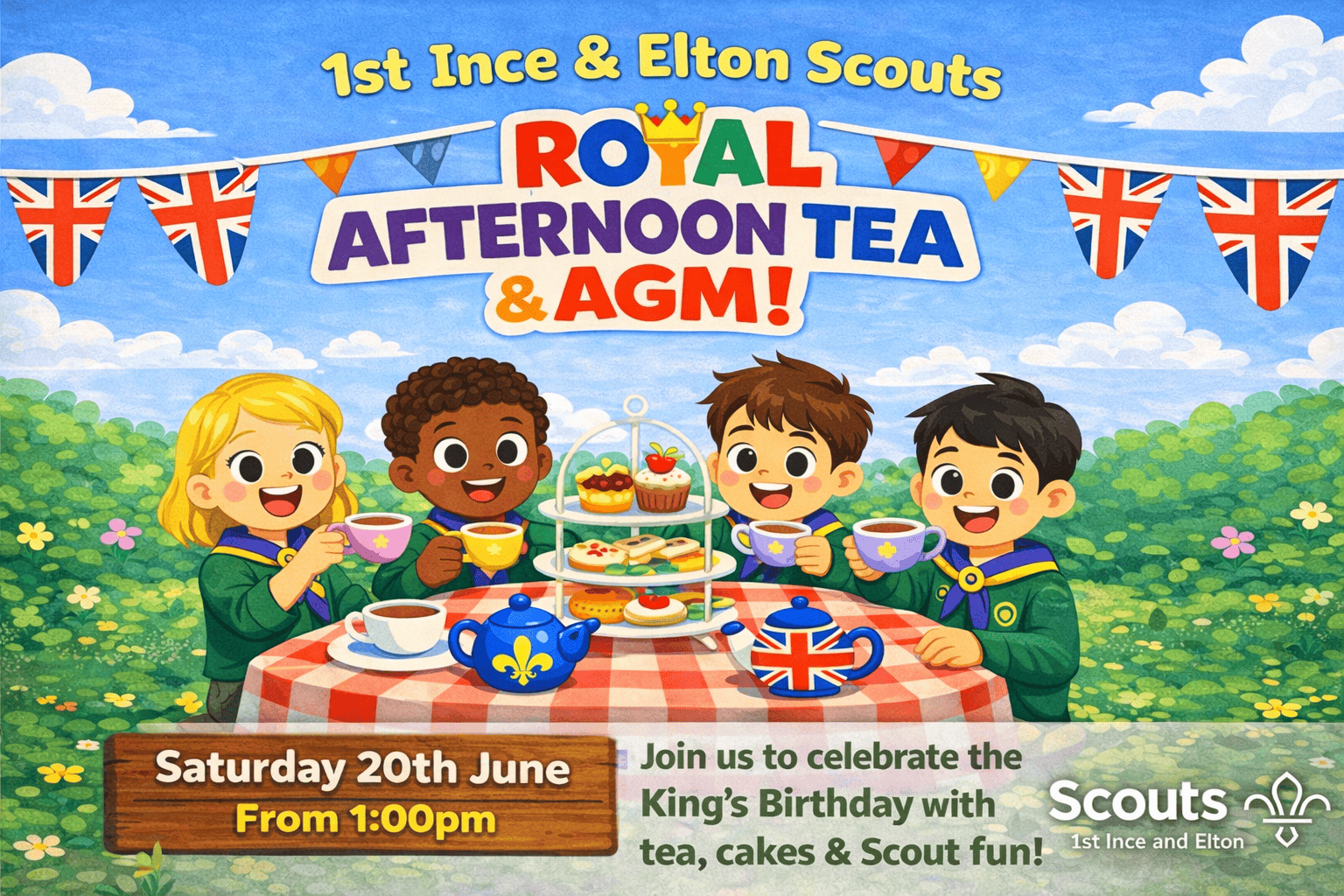We’re pleased to invite you to this year’s 1st Ince and Elton Scout Group Royal Afternoon Tea & AGM – a relaxed and enjoyable afternoon as we come together to celebrate another fantastic year of Scouting.